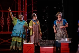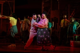 ….”Director Chía Patiño, abetted by Choreographer Amanda Castro has given us much to enjoy in her varied and well-focused staging. Ms. Patiño has used every opportunity available in the various levels of the house and stairway structures to create varied and evolving stage pictures. Her blocking is clean and economical, and she does her best to try to focus the story around Esperanza. She does manage to bring out the most she can from each performer, no matter how small the role. And Ms. Castro has devised some infectious dance steps that contribute a lot to the lighter moments”.